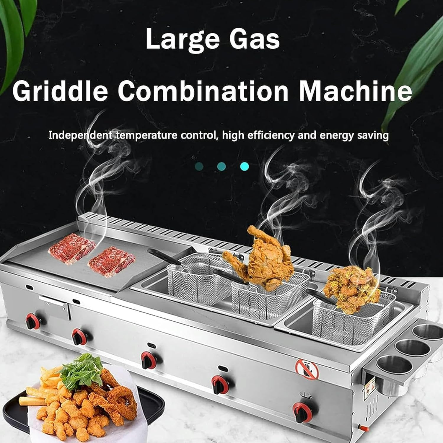 A Must-Have Deep Fat Fryer in Your Kitchen!You can enjoy fish & chips at home!With this Deep Fat Fryer, you could make more healthy and creative recipes by yourselves! The thermostat control allows you to set perfect temperature for different ingredients, such as fried doughnuts, fritters, chocolate bars, popcorn chicken, spring rolls, dumplings--the food lists is endless! And the frying basket is able to fry enough ingredients for family sharing for one time. It is time-saving and energy-saving.From Frozen or FreshWhether you're a fan of artisanal hand-cut fries or the simplicity of frozen spuds, create a satisfying, golden-brown crisp in minutes. Leftovers falling flat? Give them a boost with a quick dip in the fryer for a better crunch than ever. Season with your favorite fresh or dried herbs and spices, or a simple sprinkle of salt and pepper.Powerful & Automatic ThermostatThanks to the high performance of the removable heating element, the oil in the deep fryer reaches the maximum temperature of 200°C extremely quickly. If a temperature of about 180°C is reached, you can produce large quantities of fries in a short time due to the performance and the tank volume. For optimal cooking results, the highly sensitive, energy-saving thermostat keeps the heat of the oil tank at a constant temperature.Product List:1 x Deep Fryers (Does not include other)Warm Tips:- Please disconnect the propane gas and wait the oil temperature drops before cleaning.Then use wet towel to clean the surface and wire.- This professional deep fryer with oil cylinder and basket, Please check the size and power carefully before buying.