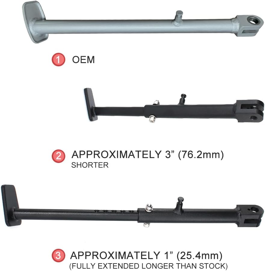 Fitment Fit for CRF250L 2012-2020 Fit for CRF250L Rally 2018-2020 Motorcycle Adjustable Kickstand (0-4 inch ) - Maximum extension 2inch, minimum shortening 2inch. - Note: If you lower the frame will be closer to the ground, the kickstand is mounted to the frame and will need to be shorter Kickstand fit the bike angle well Seat Cover - Features: Specially designed protrusions for improved friction and riding comfort - Design: The shape of the seat cover fits the lines of the motorbike body, which can further highlight the smoothness and dynamics of the body - Please note that the installation is not done directly on the cushion; it requires a visit to a workshop for binding. - Seat covers only, no sponge cushions, the size is the same as the original