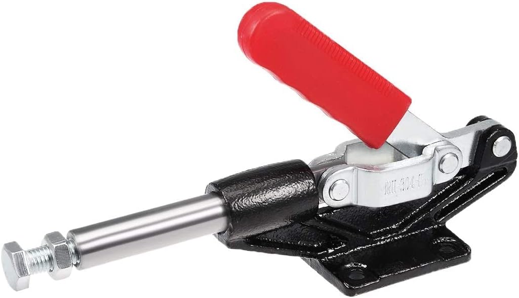 Specifications: Type: Push-pull action Model No.: BRH-304-HM Handle opening angle: 180° Holding capacity: 680 kg / 1496 lbs. Finish: Galvanized Material : Carbon Steel, Plastic Handle Color: Red Mounting Hole Diameter: 8.6mm Mounting hole distance: 52 x 52 mm (L x W) Screw Thread Size: M12 x 39mm Clamp size: 230 x 70 x 140 mm (L x W x H). Package Contents : 1pc x Toggle Clamp Description: Quick release lever clamp with unique push/pull action, allows you to hold workpiece upright. Material: Cold rolled carbon steel with zinc coating for corrosion resistance. Plastic cover Non-slip handle for easy, safe and comfortable operation for quickly clamping sheet metal or circuit boards, templates for machine operation, welding, woodworking, electronic equipment assembly, etc.