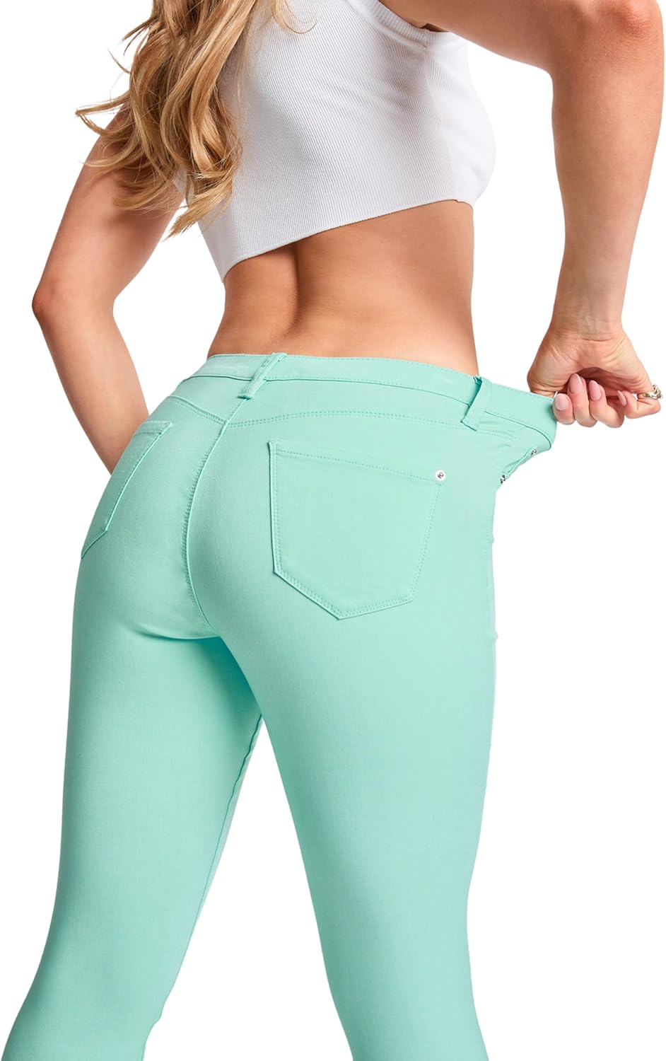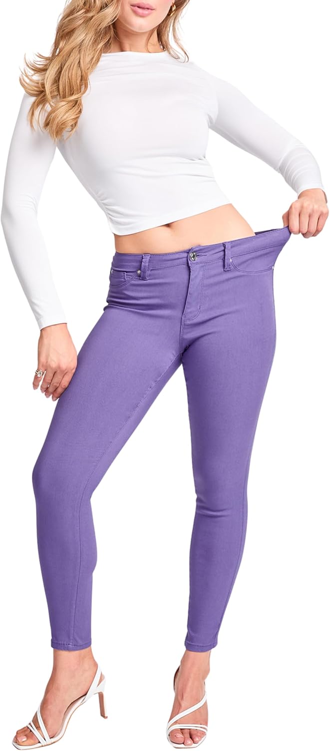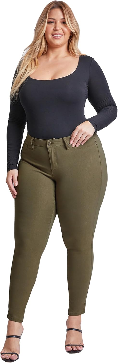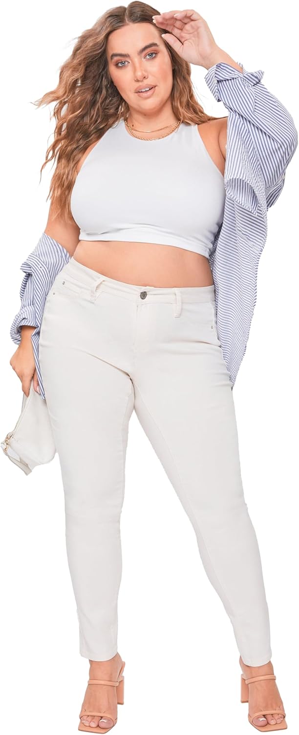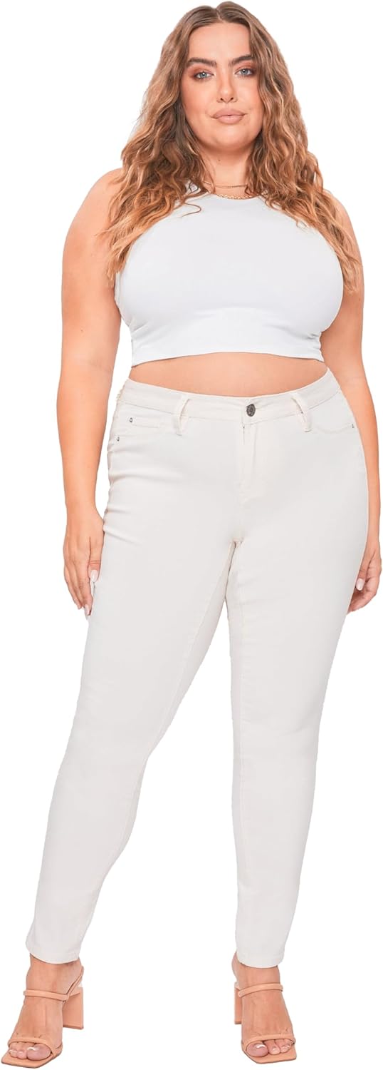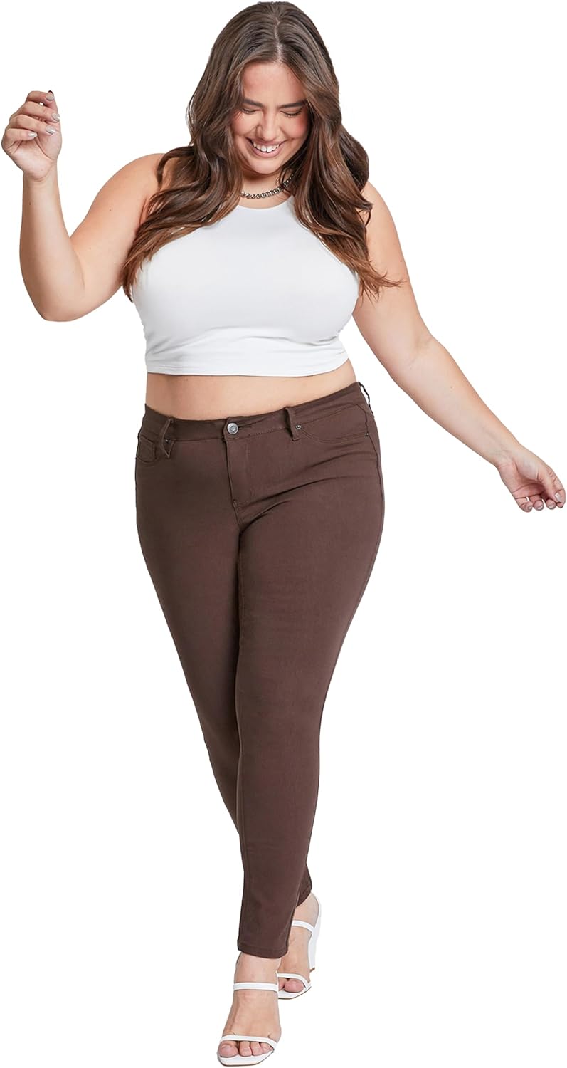 Join the hype today and find the perfect pair of mid-rise skinny jeans! Our unique hyperstretch fabric was designed to highlight and define your natural curves all day long while providing you with day-long comfort and style. Our shape-defining, lightweight stretchy, soft fabric will have you moving freely all day long. At YMI it is our mission to promote body positivity and inclusivity by providing a wide selection of sizes and styles, check out our plus size selections today! Meet our best-selling Hyperstretch Mid-Rise Skinny Jeans! Made with a body-hugging, lightweight, extremely stretchy fabric the midrise skinny jeans will have you feeling stylish and comfortable all day long. Our innovative hyperstretch fabric will hug your waist and maintain its shape along your legs throughout the day! Available in plus sizes and a variety of colors find your perfect body-hugging, curve-defining stretchy skinny jeans today. Why give up style for comfort when you can have them both? Our hyperstretch skinny jeans are designed to provide you with the day-long comfort of leggings while giving you the style of modern y2k-inspired fitted skinny jeans. The mid-rise skinny jeans feature faux front pockets, single-button with zip closure, and belt loops, making them the perfect casual weekend jeans or comfy skinny work jeans. The lightweight, flexible fabric makes the hyperstretch jeans very versatile and wearable all year long. Mid-Rise Skinny jeans are perfect for any occasion, wear these jeans on a busy Monday morning or a casual Sunday afternoon. The skinny fit makes these flexible, stretchy jeans perfect to style with an oversized band tee and sandals for a casual lightweight summer look or with a corset and heels for a night look. However, you decide to style these jeans you will feel effortlessly comfortable all day long! Wash and care: The mid-rise hyperstretch skinny jeans for women are machine wash safe! Our durable, stretchy, body-hugging fabric allows for easy and hassle-free care! Simply machine wash cold and you are set!