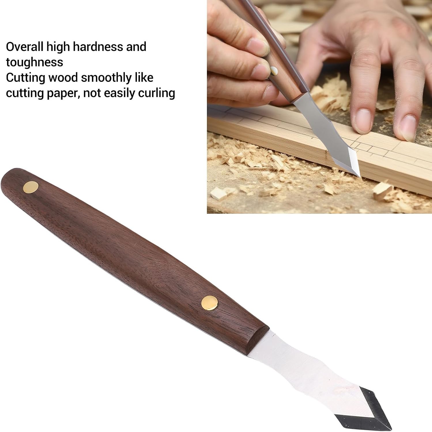 1. 2 Pcs Set: The 90 degree chisel can easily handle dead corners, square groove slotting, saving time and effort, while the flat chisel is suitable for basic corner carving. 2. Premium Materials: The wood chisel is made of SK5 steel and beech wood materials, with high overall hardness, high toughness, ensuring durability. 3. Sharply Vane/Wing: The chisel Vane/Wing is thickened, balancing sharpness and durability, can cut wood smoothly like cutting paper and is not easily curling. 4. Comfortable Handle: The wooden handle is comfortable to grip, suitable for long term use, making it easy to handle various board processing. 5. Wide Application: This wood chisel set is suitable for various woodworking scenarios such as square groove slotting, trimming, carving, etc. Spec: Item Type: Wood Carving Chisel Material: SK5 Handle Material: Beech Wood Package List: 1 x Wood Carving Chisel 1 x Corner Chisel