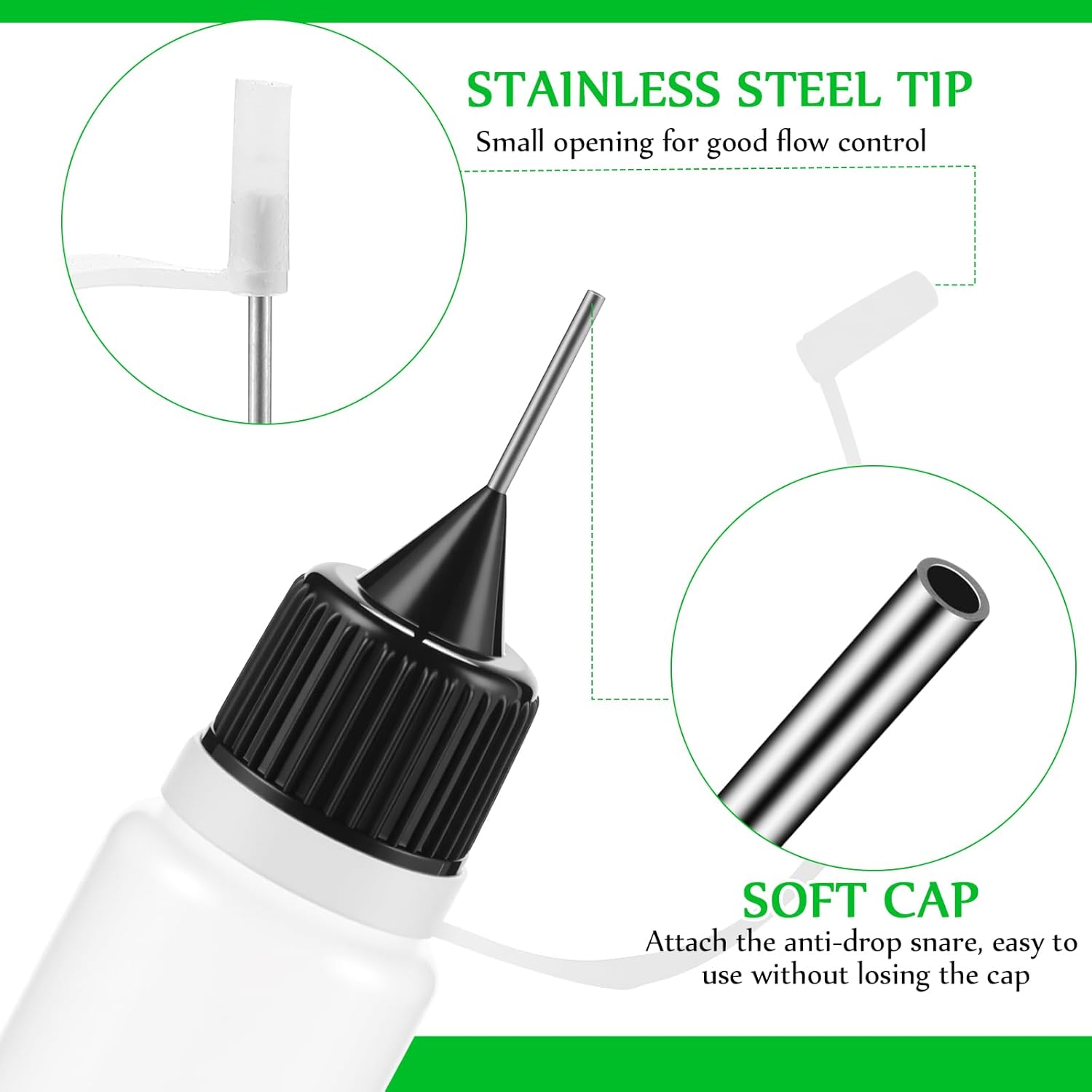 • With Silicone Cap: the glue bottles with fine tip is equipped with a silicone cap, which can protect the internal product from being sealed and dry; It has an anti drop snare, which can effectively connect the bottle body and the silicone cap, easy to use and will not lose the cap