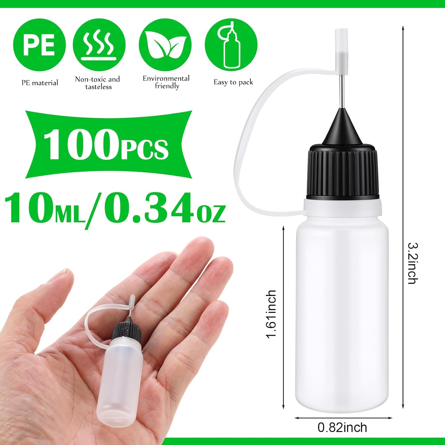 • Suitable Size: the small squeeze bottles are about 3.2 inches long and can hold 0.34 oz/ 10 ml of liquid, small and easy to control; The 1 mm wide needle tip design can easily control the dosage, which is suitable for applying to small details of painting or precision devices, and can be applied accurately