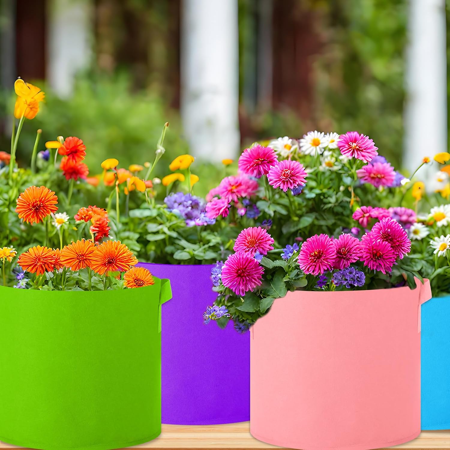Features: Size: With a size of 5 gallons, our grow bags provide you enough space for all your gardening needs. Be it growing vegetables, fruits or any of your favorite plants, it fits perfectly for both beginner gardeners and experienced growers. Easy to Use: Our fabric plant pots are designed keeping in mind scientific requirements for plant growth, including convenient handles that make them easy to move. Whether you want to rearrange your patio or move your plants to better light, our plant pots help you do it with ease Material: Non Woven Fabric Color: muticolor Size: 5 Gallon Package includes: 20 Pack Grow Bags Notes: Manual measurement, please allow slight errors on size. The color may exist a slight difference due to different screen displays.