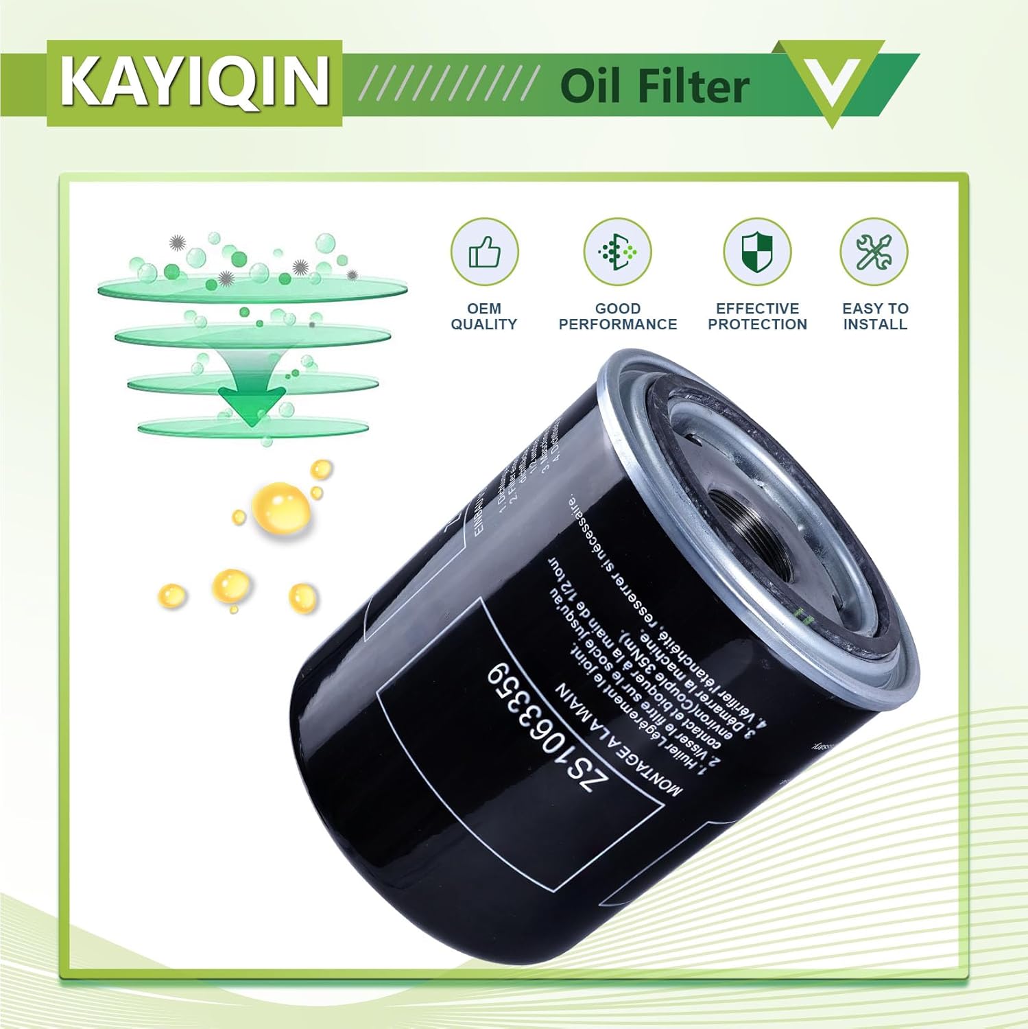 ZS1063359 KAYIQIN Oil Filter Replacement Compatible with ESM30/37/50 Air Compressor Package: 1 oil filter Compatible part: ZS1063359 Application: Application: ESM30/37/50